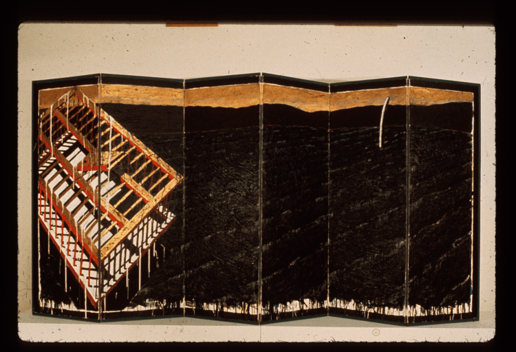 Mixed media on paper (byobu). 22″ x 30″. Collection of Gail and John Enns. This was the first folding screen I made. I was assisted in learning this art form by Mary Amt, Special Assistant to The Director at the Smithsonian Freer Gallery. We watched a film of hiogushi (conservators) rebuilding a byobu at The […]