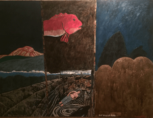Oil and gilding on canvas, 51 1/2” x 67”. Artist’s collection