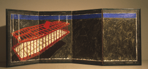 “Coffin-Cage Byõbu” 1992 tomnakashima1992, Painting, Screens (byobu)Leave a comment Oil & gilding on byõbu, 14” x 48”. Share this: Share on X (Opens in new window) X Share on Facebook (Opens in new window) Facebook Like Loading... Related