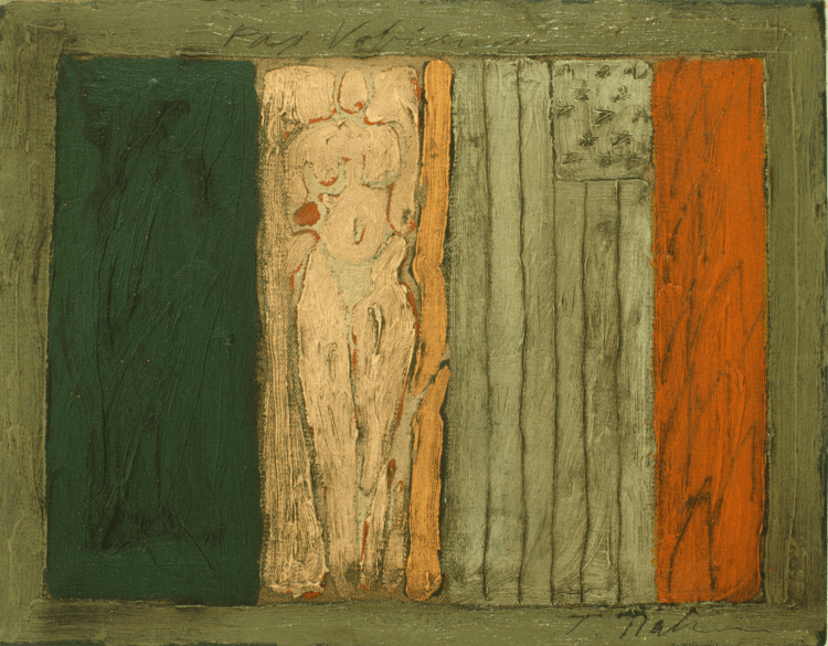 “(Pax Vobiscum) Bather with Fish and Flag” 1986