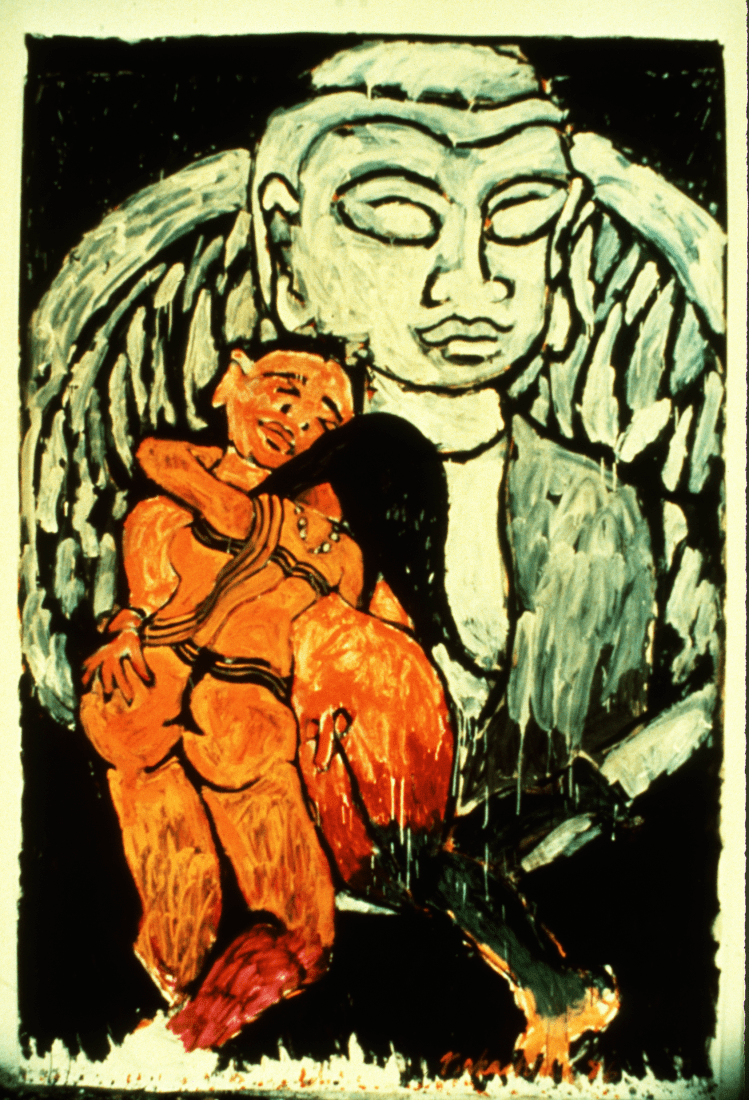 Graphite on paper, 72” x 48”. Artist’s collection. The idea for this drawing was in part inspired by a selfie taken by my sister-in-law Susan Hughes. She took it while climbing Manchu Picchu. She passed a pyramid constructed of 2” x 2”s and roofing tin (used by American hippies as meditation huts. In the photo […]