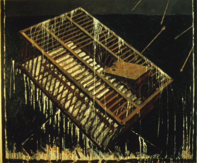 Read MoreOil and gilding on canvas. 96″ x 115″. Collection of the artist. This was my 1st painting using the subject of a cage. I was in a DC junk store and saw a chicken cage. I bought it and it became a standard still life sitting on my studio floor. At some point I took […]