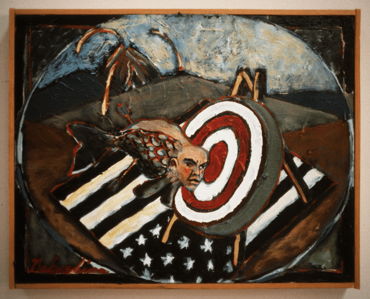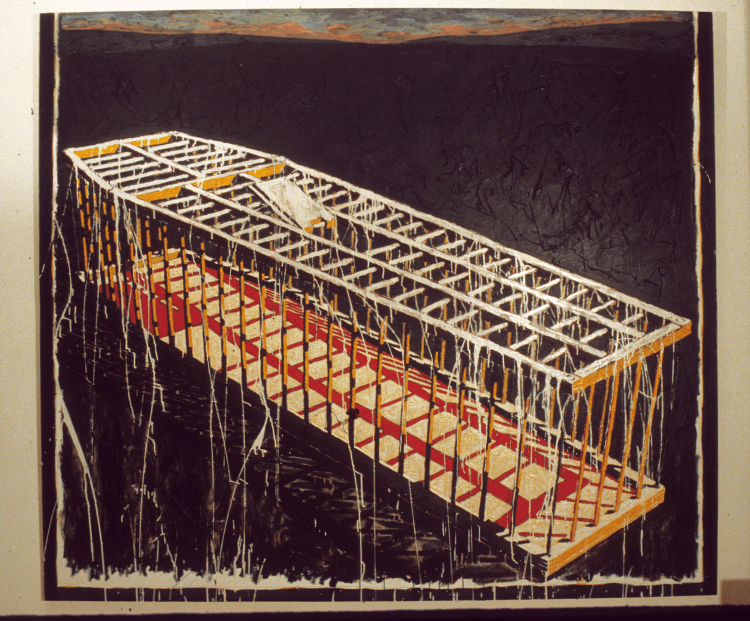 Oil on canvas, 84” x 96”. Artist’s collection. The chicken coups were inspired by the famous photo wreckage of a bus in El Salvador The bus carrying a group of nuns returning from the city after shopping for food. They had all been raped and murdered. Later I got the idea of painting a cage […]