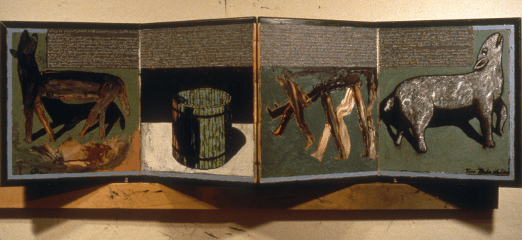 Read MoreOil on byōbu screen, 20” x 72”. Sold by David Teplitzky.
