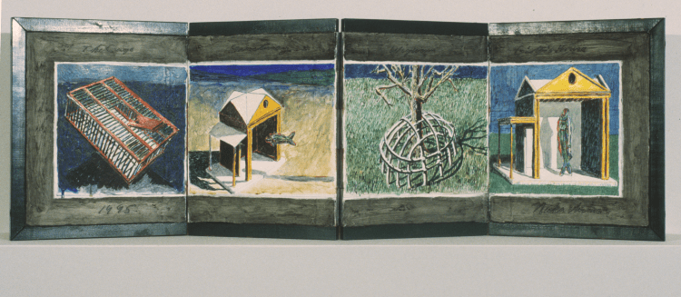 Mixed media on paper (byobu). 22″ x 30″. Collection of Gail and John Enns. This was the first folding screen I made. I was assisted in learning this art form by Mary Amt, Special Assistant to The Director at the Smithsonian Freer Gallery. We watched a film of hiogushi (conservators) rebuilding a byobu at The […]
