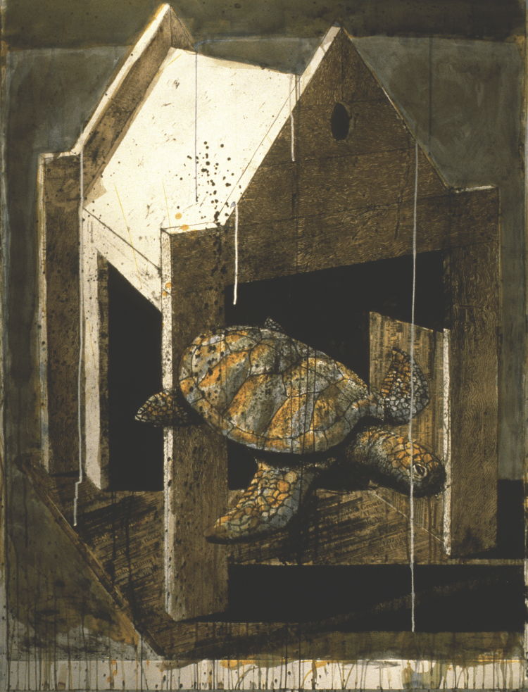 Pulp painting. 22″ x 30″. I was always fascinated by Mobius Strips and Klein Bottles because of their magic. Topology was a kind of childhood hobby. In the 60s while teaching I would sometimes entertain my students by demonstrating a topological puzzle whereby I would put on a vest followed by a sports coat. Then […]