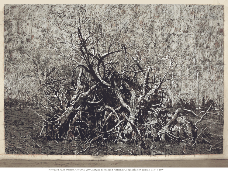 Read MoreAcrylic, chalk line and magazine collage on canvas, 110” x165”. Artist’s collection.