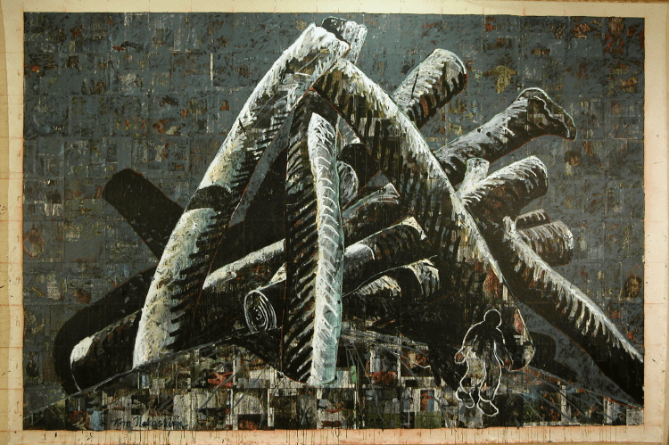 ”Monument to a Dying Planet” 2008 April 24, 2020.Reading time less than 1 minute. Acrylic and magazine collage on canvas, 110” x 165”. Read More