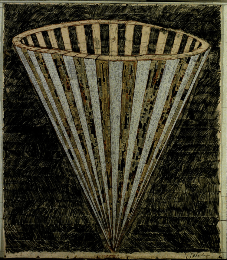 Charcoal, conte crayon, and collage. 72″ x 60″. Collection of Patrice and Herb Miller. The choice to use a vortex was inspired by DuChamp’s “Large Glass” and the idea within the zietgeist of the “The Event Horizon”, and how that subject is brought home to Planet Earth today in the familiar form of global warming. […]