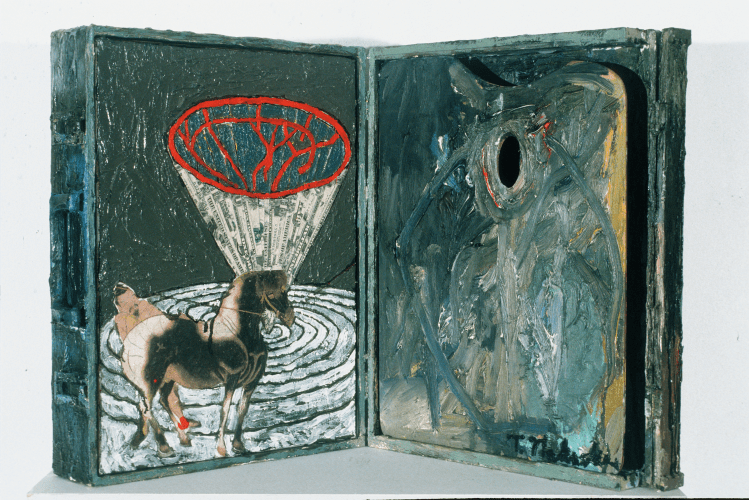 16 1/2” x 24”. Unknown location. one of my many painting boxes. The figure and the horse is a collage of an image taken from a beautiful screen in The Cleveland Museum of Art titled “Horses & Their Grooms”. The Vortex is taken from DuChamp and I use it for its intrinsic feeling of a […]